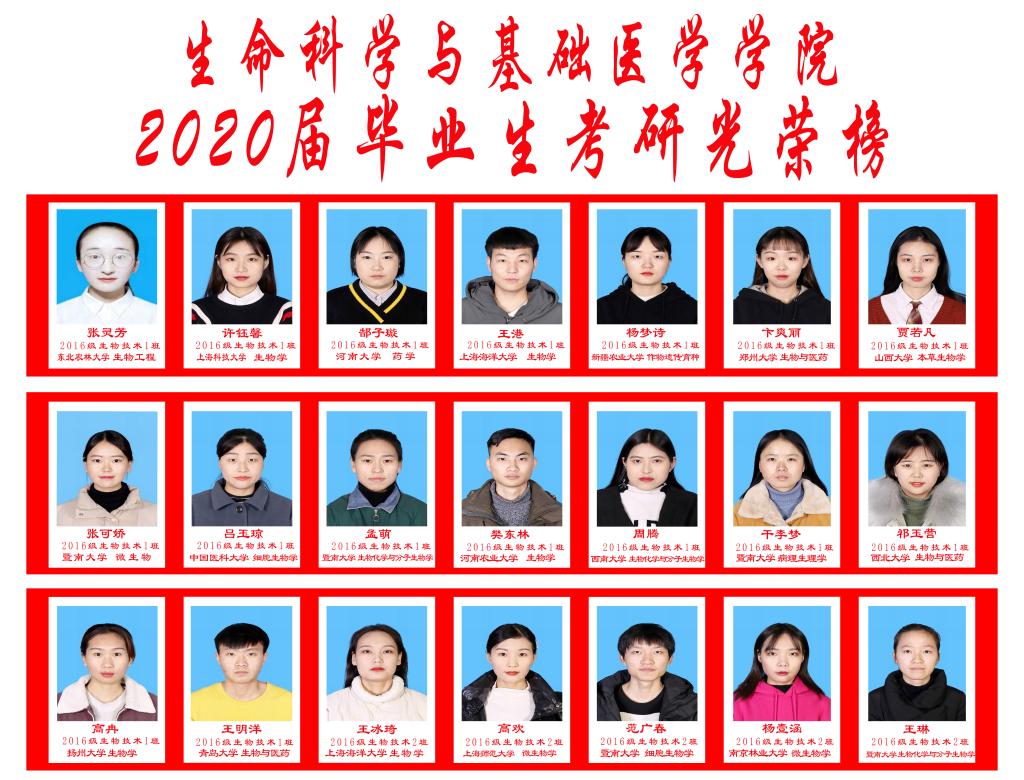 生命科学与基础医学学院2020届毕业生考研光荣榜