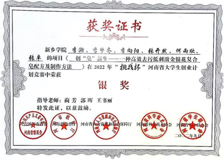 2022年,由蔺芳博士指导的学生在“挑战杯”大学生创业计划大赛中获得河南省银奖,在大学生生命竞赛中获得河南省三等奖,在大学生创新创业大赛中获国家级立项,同时,由其指导的毕业论文多次被评为校级优秀论文。学生经过良好的科研训练后,其理论功底、创新能力和实践能力均有了明显提升,先后考入南京农业大学、首都师范大学、浙江工商大学、上海应用技术大学等高校攻读硕士研究生。
