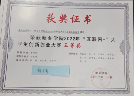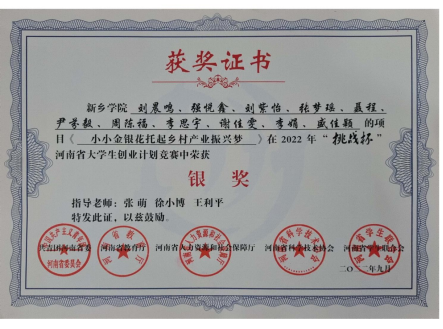 为助力乡村振兴、扎实推进yl6809永利集团与封丘县“校地结对帮扶”工作,我校与新乡市博凯生物技术有限公司进行校企合作,成立了“yl6809永利集团·博凯药用植物绿色合成研发中心”,开展金银花等道地药材的综合开发利用合作项目。依托此横向项目和省级科研项目,在创新引飞导师徐小博博士的带领下,组建了一支“创新引飞导师+学生”生物资源开发利用小分队,开展了相关课题的研究,让学生参与实质性的科研活动中,培养学生的创新意识和创新能力,指导学生完成国家级和省级大学生创新创业训练计划项目各1项;指导学生参加学科比赛,获得“挑战杯”河南省大学生创业计划竞赛银奖1项,省级生命科学竞赛三等奖1项,校级“互联网+”大学生创新创业大赛三等奖,使学生得到全方位发展。