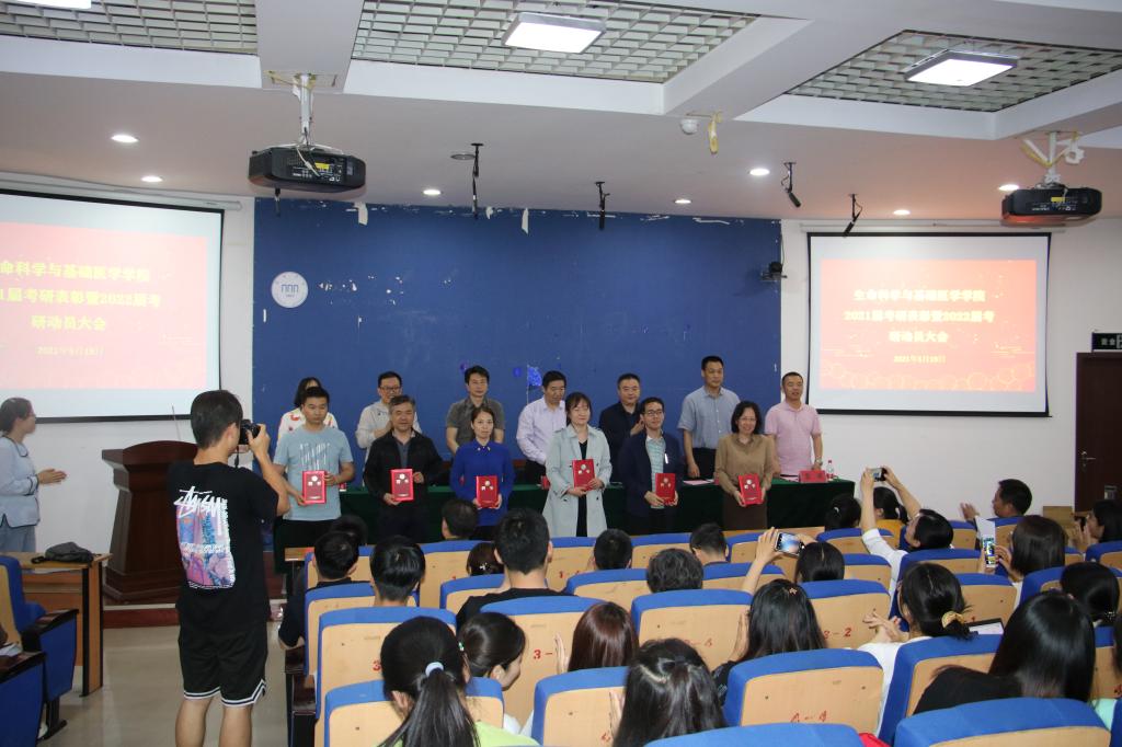 副院长郭晖宣读了《生科学院关于表彰2021届本科生考研先进个人和优秀指导教师的决定》,与会领导为考研先进个人代表和优秀指导教师颁奖。