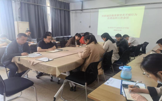郭晖首先传达了学校关于开展科研诚信教育和学术不端行为自查自纠工作的通知精神,重申了本次会议召开的重要性和必要性。随后,科研秘书王书丽宣读了《生命科学与基础医学学院和河南省动物疫病分子诊断工程实验室关于开展科研诚信教育和学术不端行为自查自纠工作方案》,对本次自查自纠工作进行了详细安排,要求各教研室开展科研诚信宣传教育活动,认真组织和学习相关文件,做到全员覆盖、零容忍,积极通过自查自纠和以案促改等形式形成自查报告,并签订《科研诚信承诺书》,继续完善科研诚信制度建设,做好科研活动的全流程诚信管理。通过本次会议,各位老师进一步提高了诚信意识,营造了诚实守信、追求真理、崇尚创新、鼓励探索、勇攀高峰的良好氛围。