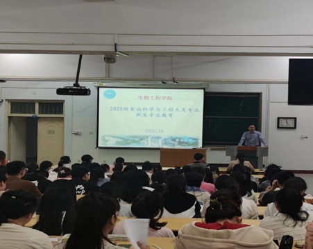 会议开始,田金河和徐小博主任分别向同学们详细介绍了我院食品科学与工程和酿酒工程专业的发展情况以及毕业后可以从事的职业,并一一介绍了相关专业的教师,希望同学们能够对自己所学的专业有清晰的认识。