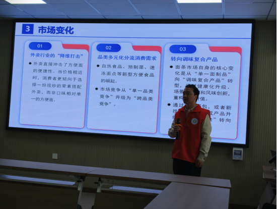 在专题讲座中,蒋兆景老师围绕“挂面工艺与面条制品展望”这一核心议题,从原料的选择优化、核心工艺技术创新,再到产品品类的创新优化,进行了系统而深入的讲解,王立龙老师就目前挂面行业的市场变化进行了深入的分析。与会企业管理人员、技术骨干认真聆听了报告,并就生产中的实际技术难题与专家进行了热烈交流。