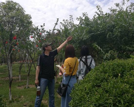 在刘兴洋老师的带领下学生们先考察了新乡市内的和谐公园、人民公园,及学校周围的行道树,之后又到郑州的植物园和濮阳的濮上园进行更深入的学习。实习期间学生们不仅了解了更多的园林树木知识,还学到了很多园林设计和园林植物造景方面的知识。