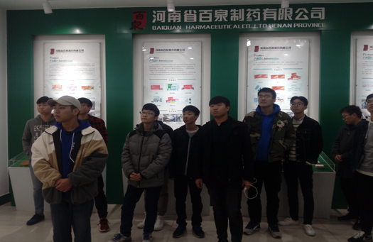 在河南百泉制药有限公司,工作人员对同学们的到来表示热烈地欢迎,之后带领学生参观了工厂布局、车间安排、企业展厅,向同学们介绍了公司的发展历程、企业文化、荣誉、产品类别、中药药剂系列药品生产流程,在实习中,同学们提出了很多问题,工作人员都一一解答。