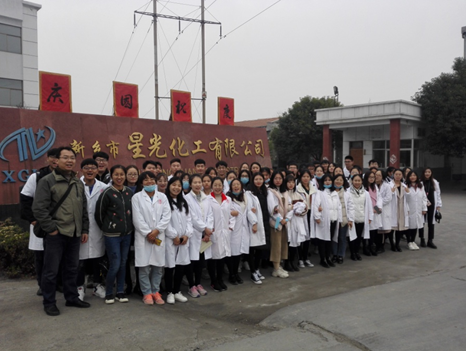 2018年11月20日下午,我院2017级食品科学与工程专业本科班学生来到新乡市星光化工有限公司进行食品工程原理课程实习。该公司成立于2001年,是一家集精细化工产品生产、销售于一体的股份制企业,专门从事吡啶类精细化工产品的生产。企业负责人刘经理首先对同学们的到来表示热烈欢迎,之后带领同学们参观了工厂生产车间、中试车间和化验室,向同学们介绍了设备、控制方案、操作参数和工艺流程等。实习中,刘经理对同学们提出的生产工艺和设备操作等方面的问题进行了耐心解答。