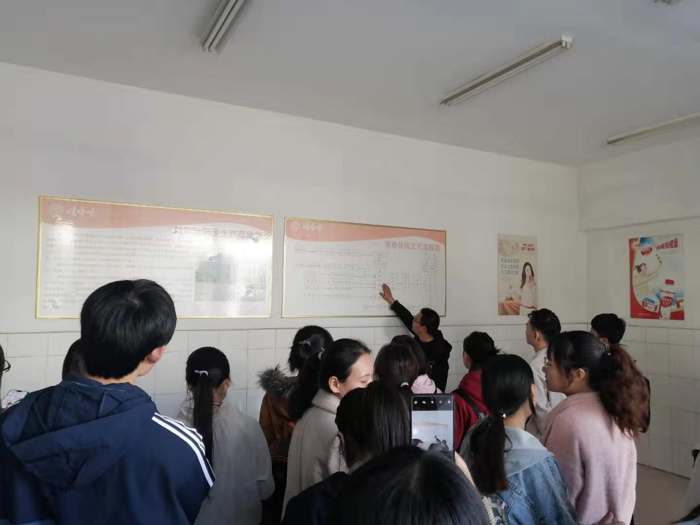 在娃哈哈(新乡)生产基地,工作人员首先给学生介绍了公司的成长历程、企业文化、荣誉、业务范围,又带领学生参观了检验室,娃哈哈系列饮品生产车间、灌装车间、仓库,介绍了工艺流程,对增强学生们的专业感性认识、提高专业兴趣、加强理论知识与生产实践结合都起到了积极的促进作用。