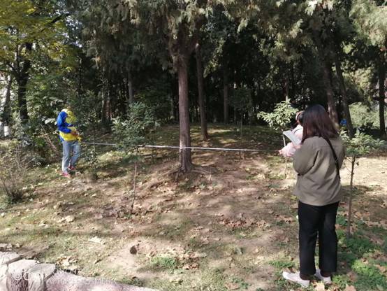 同学们在云台山主要调查了不同景观的基本结构,认识了不同类型的斑块和廊道,了解了斑块和廊道在景观结构中的作用。同学们返回学校后,又对校园和人民公园的植被进行了调查,同学们采用了样方调查的方法,每个调查地点随机选择了50个3m*3m的样方,对样方内乔木的种类、胸径、树高、冠幅进行的测量,并对调查结果进行了统计分析。