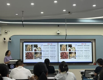 活动中,三位教师围绕不同专业课程展开精彩的观摩课,为学院教师呈现了丰富、生动的实践案例。祝传贵老师以《美食与健康》“营养素-膳食纤维”为授课内容,详细讲述了膳食纤维的定义、分类、来源和理化性质。通过讲解膳食纤维对健康的作用以及如何科学摄入膳食纤维,将理论知识与生活实践深度联结,让健康理念落地生根。陈丽丽老师讲授《氨基酸工艺学》中“谷氨酸的生物合成途径”章节,详细讲解了GHD、AT和GS等关键酶促反应,以分步拆解的方式解析谷氨酸发酵的6条代谢途径、16步反应的复杂逻辑,将理论性内容转化为可推导的知识链条,促进学生深入理解理论知识。宋雅迪老师围绕《畜产品加工》中的“畜禽产品加工-干酪”章节进行授课,围绕“传统工艺传承与创新”设计课程思政,从教材中挖掘文化育人元素;以乳扇为例,完整呈现干酪制作流程:从新鲜牛奶预处理,到酸浆点制、成型干燥的传统工艺,结合演示讲解了蛋白质凝胶化原理;对比不同地域干酪制作差异,分析盐渍、调味对品质的影响;充分引导学生思考传统食品加工的文化价值与技术升级路径,实现“知识传授+文化传承+创新思维”的多维育人。
