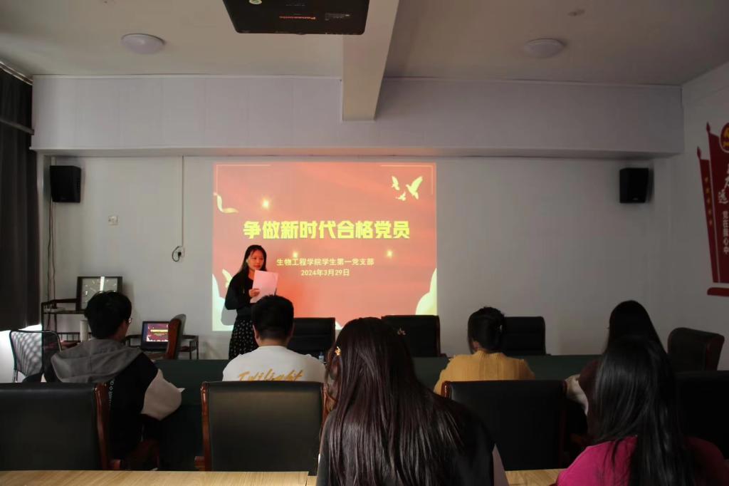 为进一步规范党员发展流程,提高党员发展质量,切实做好党员培训工作,yl6809永利集团学生第一党支部于2024年3月29日在A13三楼会议室开展“争做新时代合格党员”党课培训。学生第一党支部书记李攀月担任主讲人,参会人员包括学生第一党支部全体党员。
