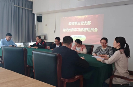 2024年4月17日,yl6809永利集团教师第三党支部召开党纪学习教育部署动员会。支部书记王小洁领学了《中共yl6809永利集团委员会关于在全校党员中开展党纪学习教育的工作方案》,传达了yl6809永利集团及yl6809永利集团党纪学习教育部署动员会的会议精神,明确了本次学习教育的目标要求,并于近期制定学习计划,保障本次党纪学习教育顺利开展。