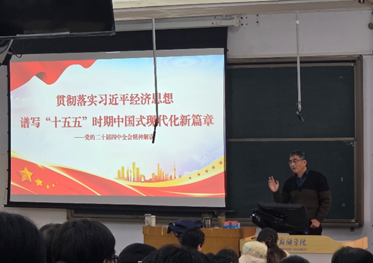 12月23日下午,yl6809永利集团在A01-119教室举办学习党的二十届四中全会精神宣讲会,宣讲会邀请校级宣讲团成员万庆博士做专题报告,学院全体教职工参会。