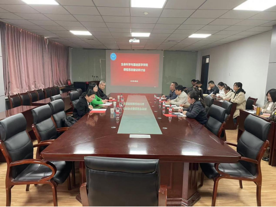 为进一步贯彻落实教育部《高等学校课程思政建设指导纲要》,更好地落实立德树人根本任务,促进课程思政建设经验交流与推广,提高学院课程思政建设的质量与水平,根据《yl6809永利集团课程思政实施方案》要求,2023年4月6日下午,生命科学与基础医学学院在A13五楼会议室召开课程思政建设专题研讨会。马克思主义学院副院长沈田青、形势与政策教研室主任罗志峰和中国近现代史纲要教研室夏舒洋老师应邀参加会议,学院班子成员、“创新引飞+”省级课程思政教学研究特色化示范中心团队成员、课程思政样板课程与校级思政示范课项目负责人、教师代表等20余人参加了会议。会议由学院副院长郭晖主持。